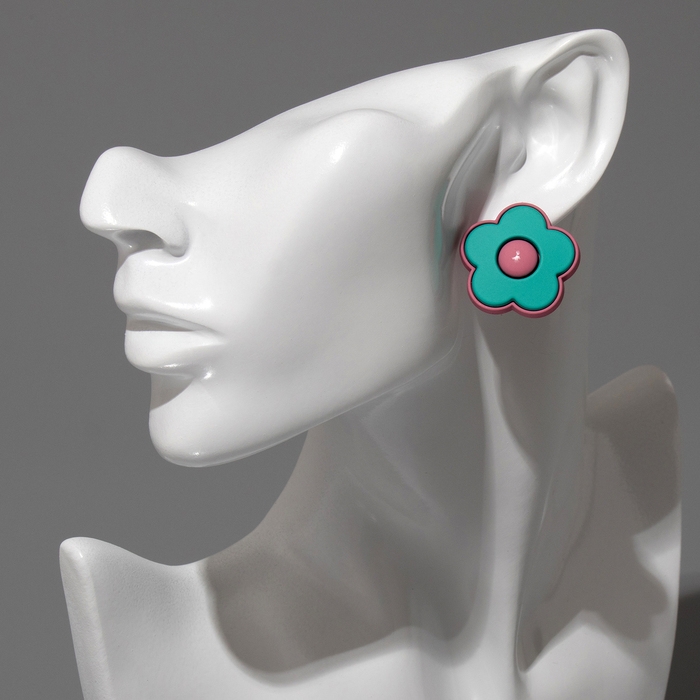 Серьги пластик «Цветочки», цвет розово-зелёный