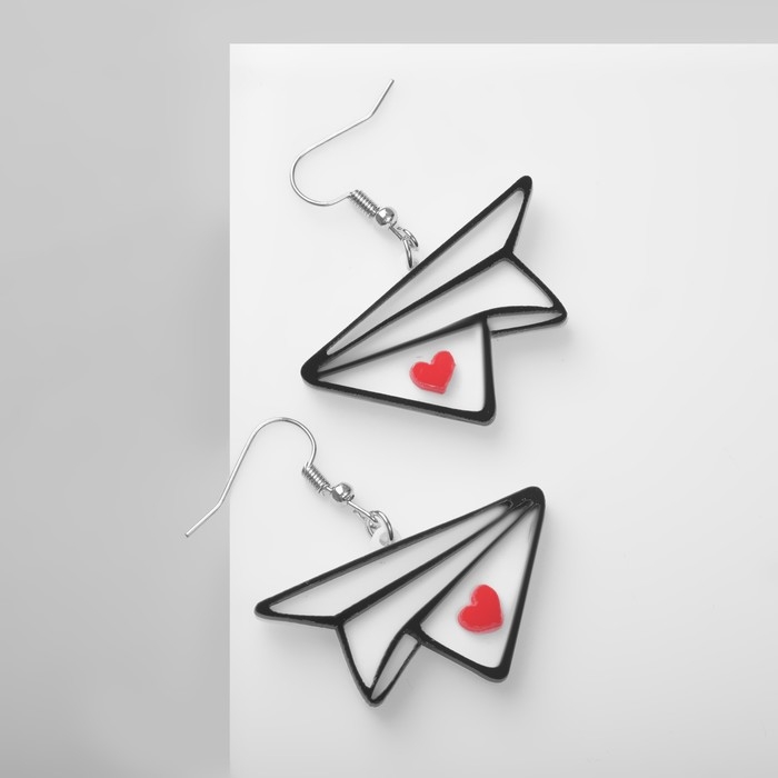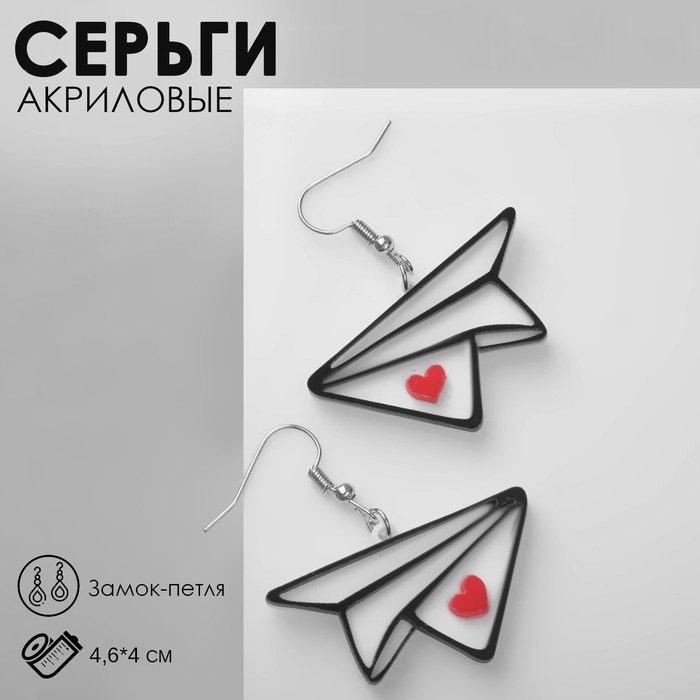 Серьги акрил «Самолётики» бумажные с сердцами, цветные в серебре
