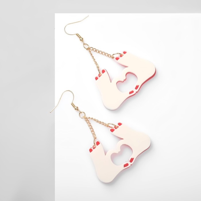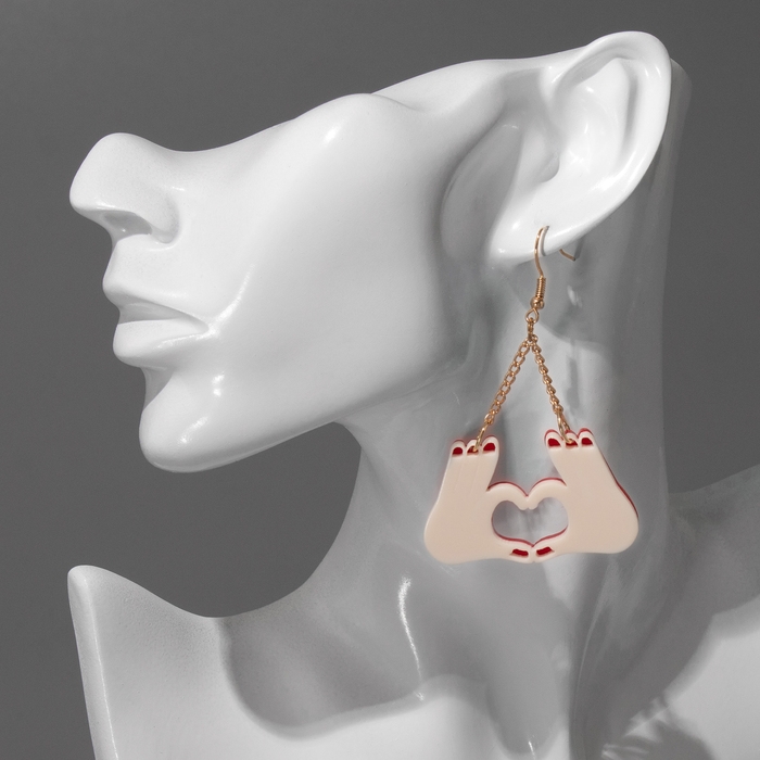 Серьги акрил «Сердца» жесты, цвет красно-молочный в золоте