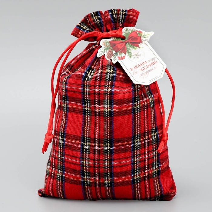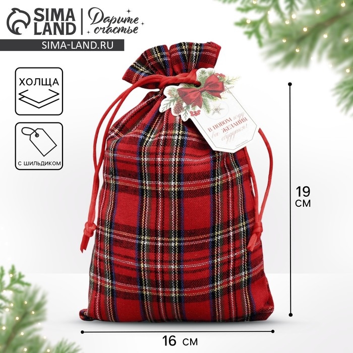 Мешок подарочный холща «С Новыми желаниями», 16 х 23 см +/- 1.5 см, Новый год