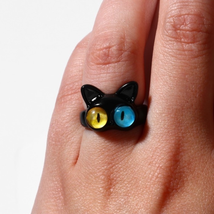 Кольцо «Монстрик» кот, цвет чёрный, безразмерное