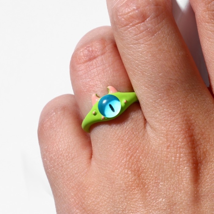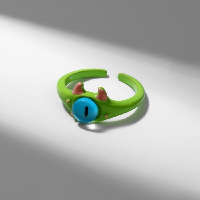 Кольцо «Монстрик» с рожками, цвет зелёный, безразмерное