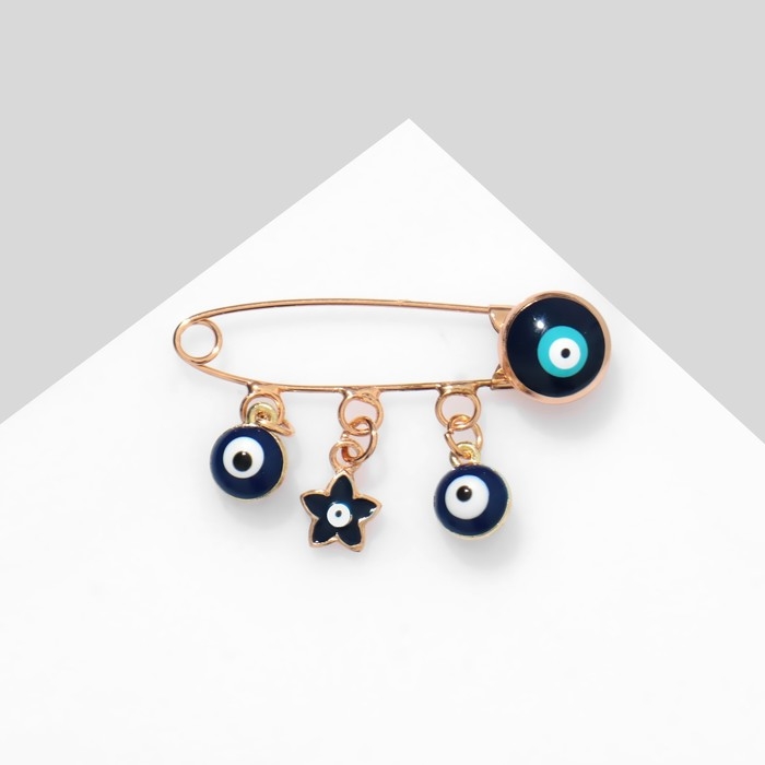 Булавка-оберег «Глазки» с подвесками, 5 см, цветная в золоте