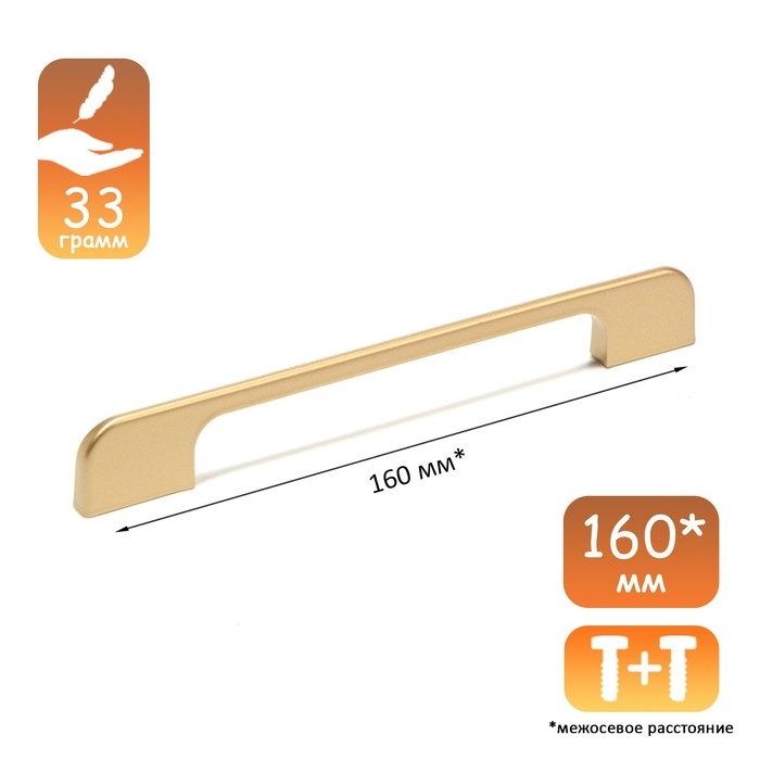Ручка-скоба CAPPIO RSC023, алюминий, м/о 160 мм, цвет золотой