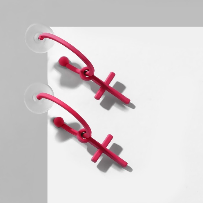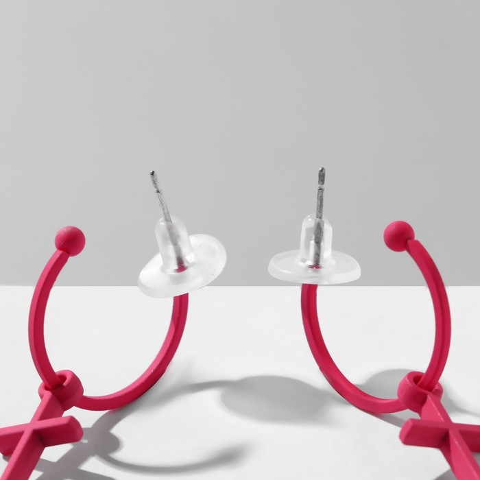 Серьги эмаль «Крестик» на кольце, цвет матовый розовый