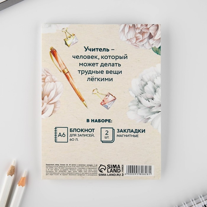 Подарочный набор: блокнот А6, 60 листов и магнитные закладки 2 шт «Учителю: Лучший учитель»