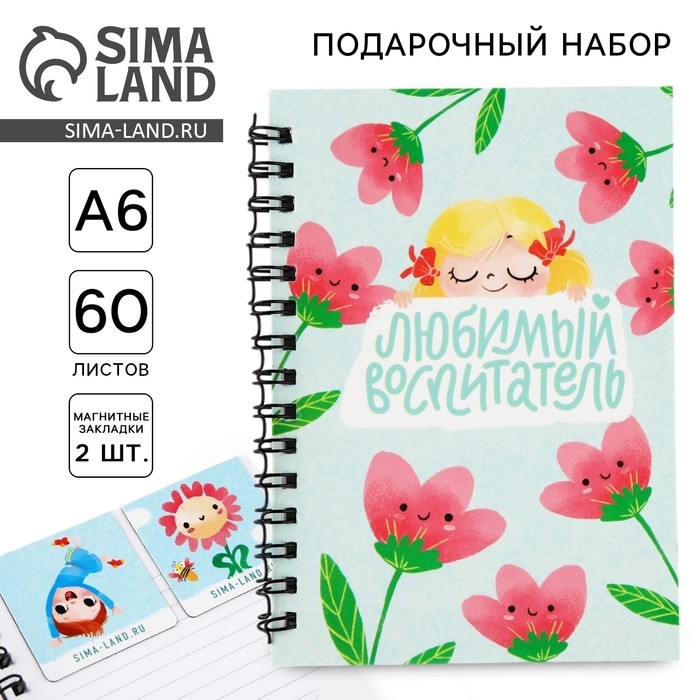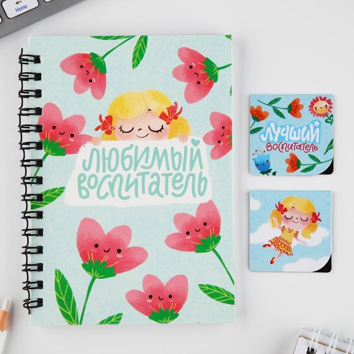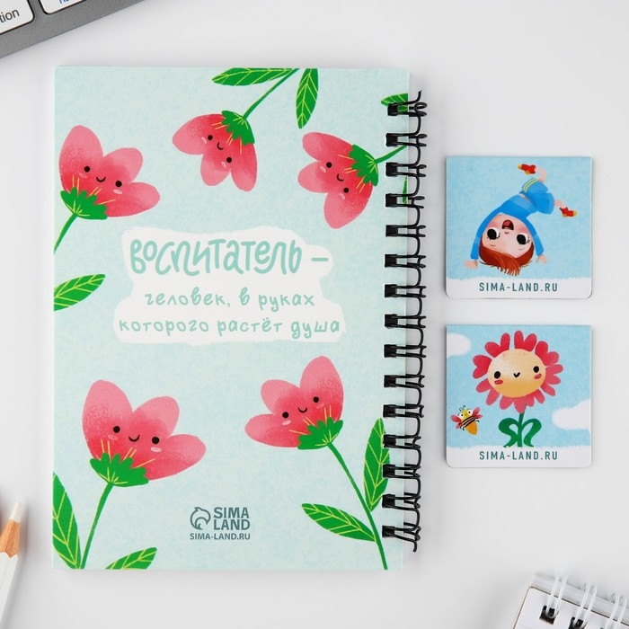 Подарочный набор: блокнот А6, 60 листов и магнитные закладки 2 шт. «Воспитателю: Любимый воспитатель»