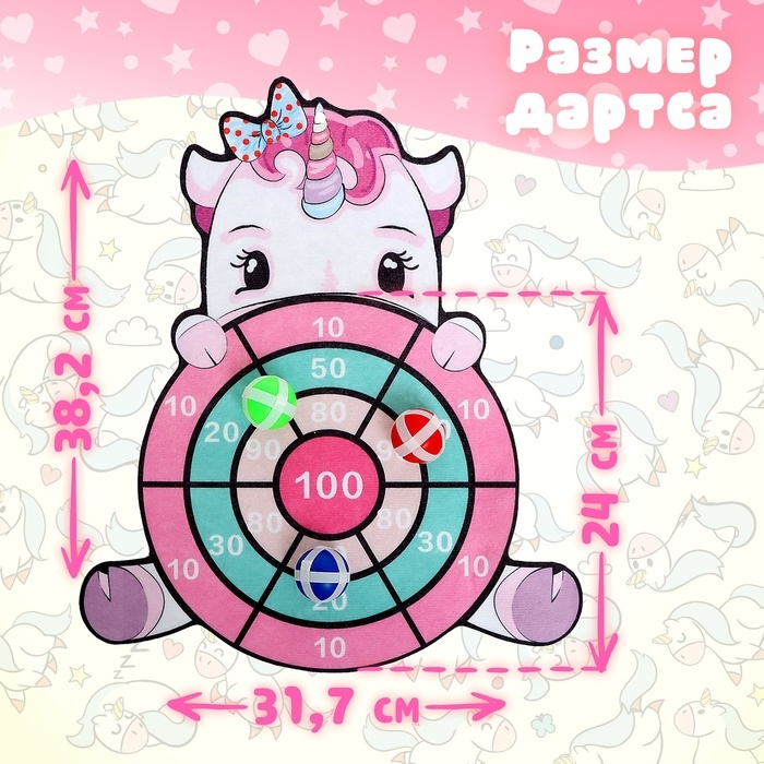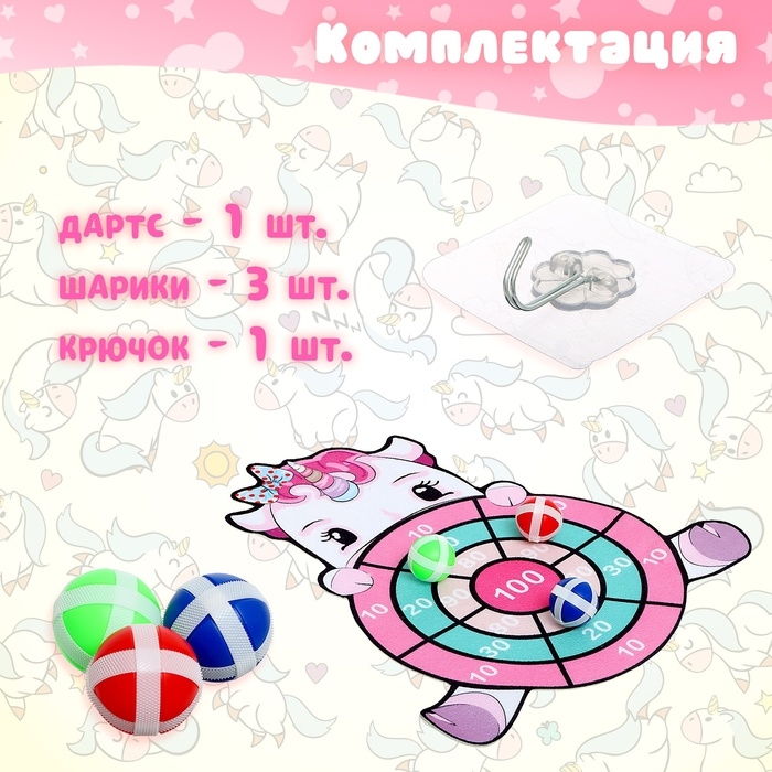 Дартс «Единорог», 3 шарика на липучках, крючок