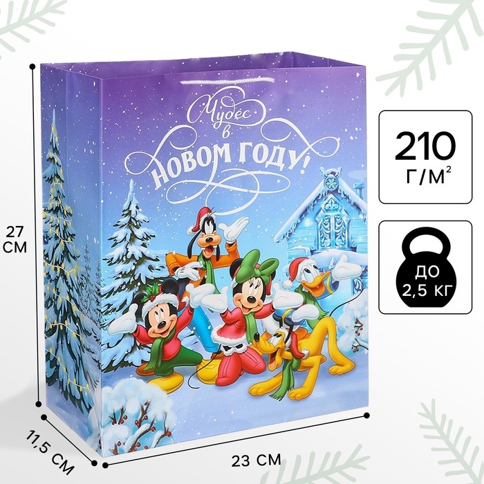 Пакет подарочный "С Новым годом!", 23х27х11.5 см, упаковка, Микки Маус
