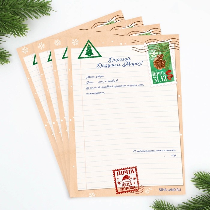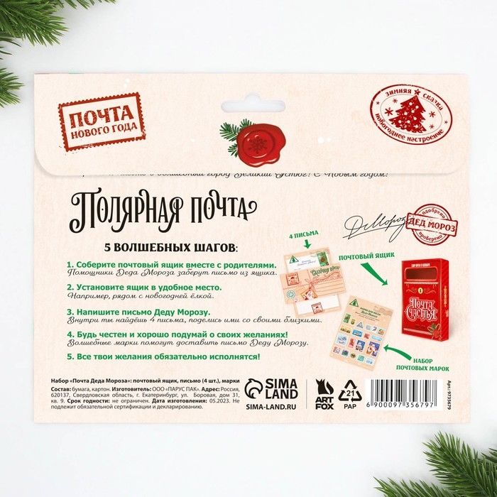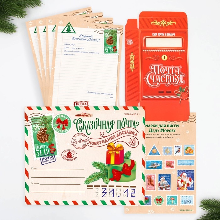Подарочный набор новогодний, письмо Деду Морозу почтовый ящик, письма (4шт.), марки «Сказочная почта»