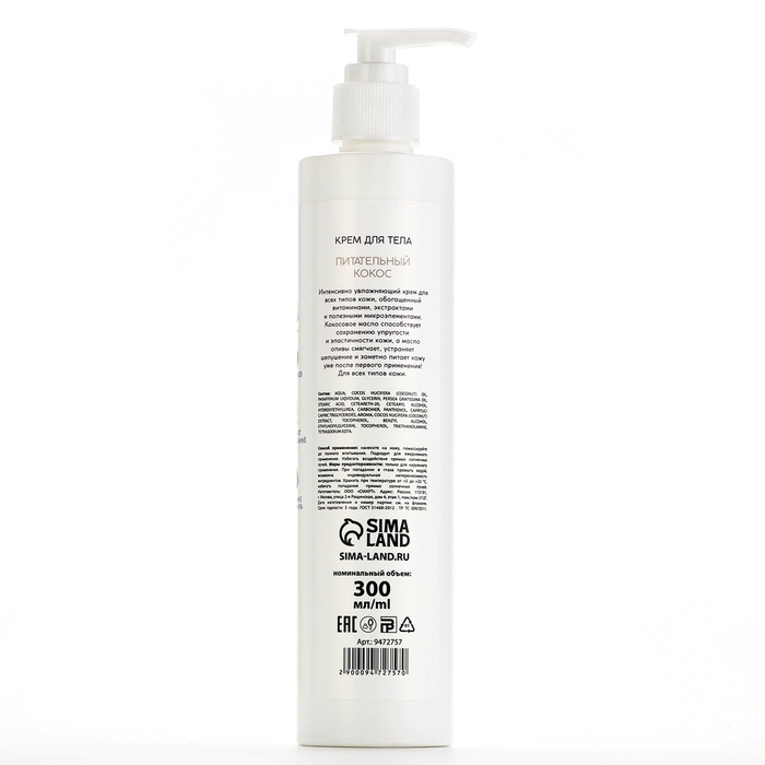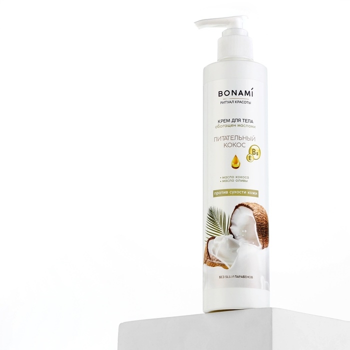 Крем для тела против сухости кожи с маслом кокоса и оливы, 300 мл, BONAMI