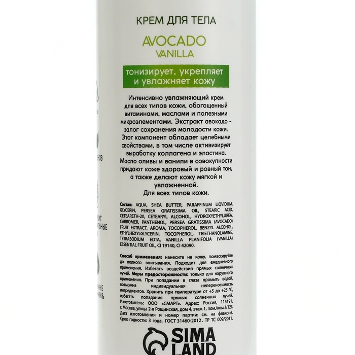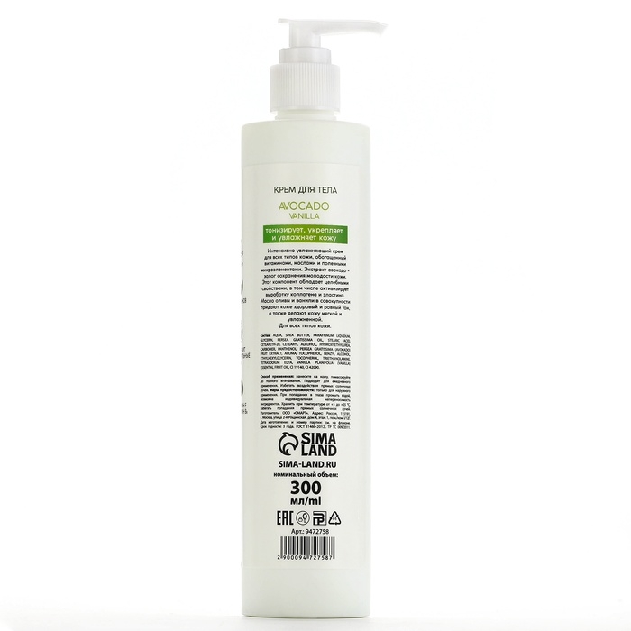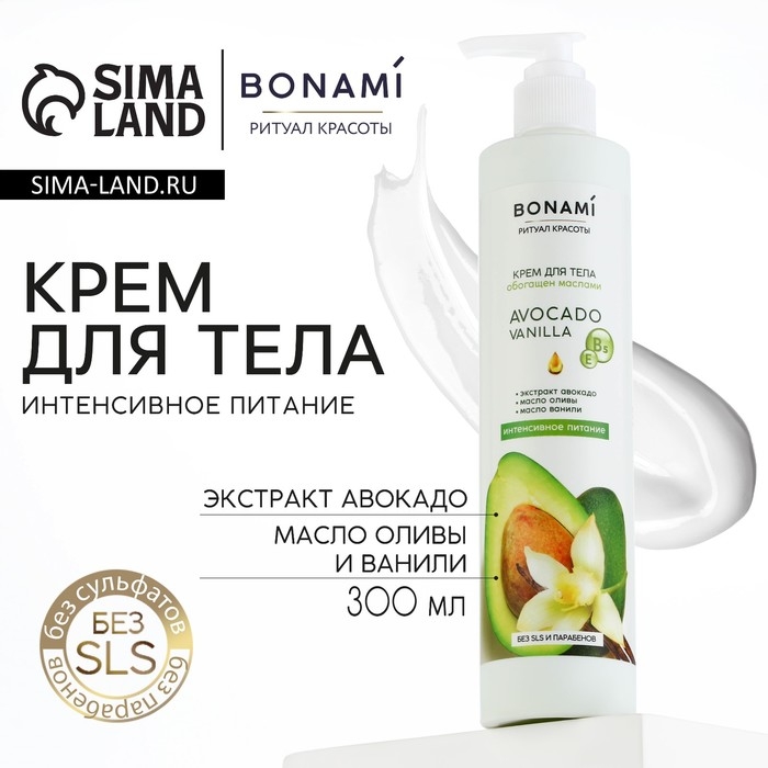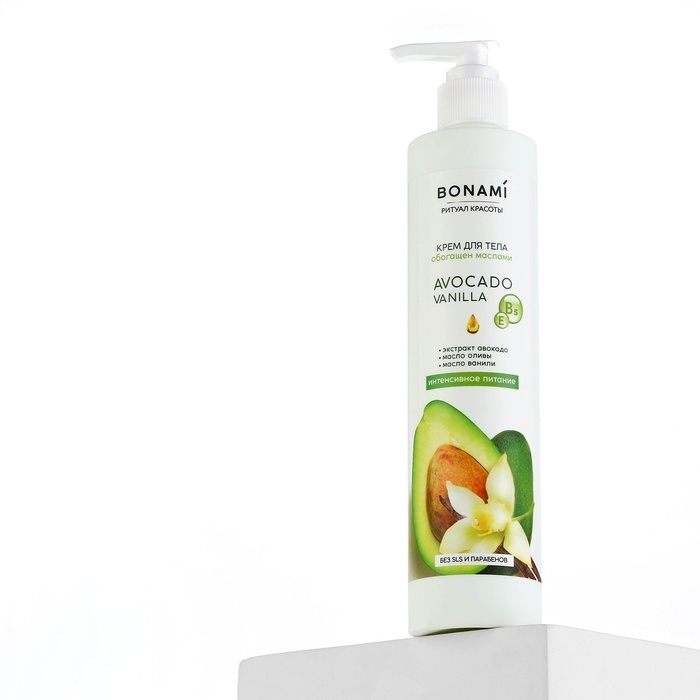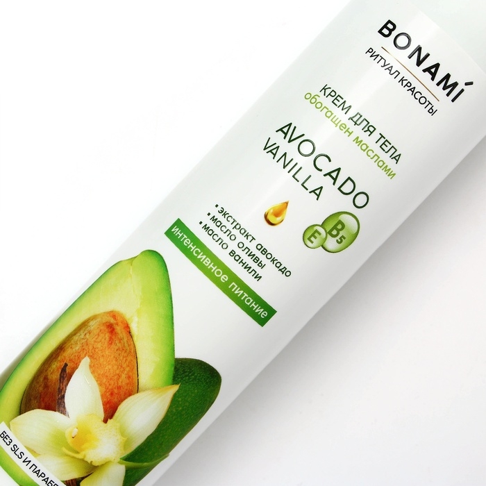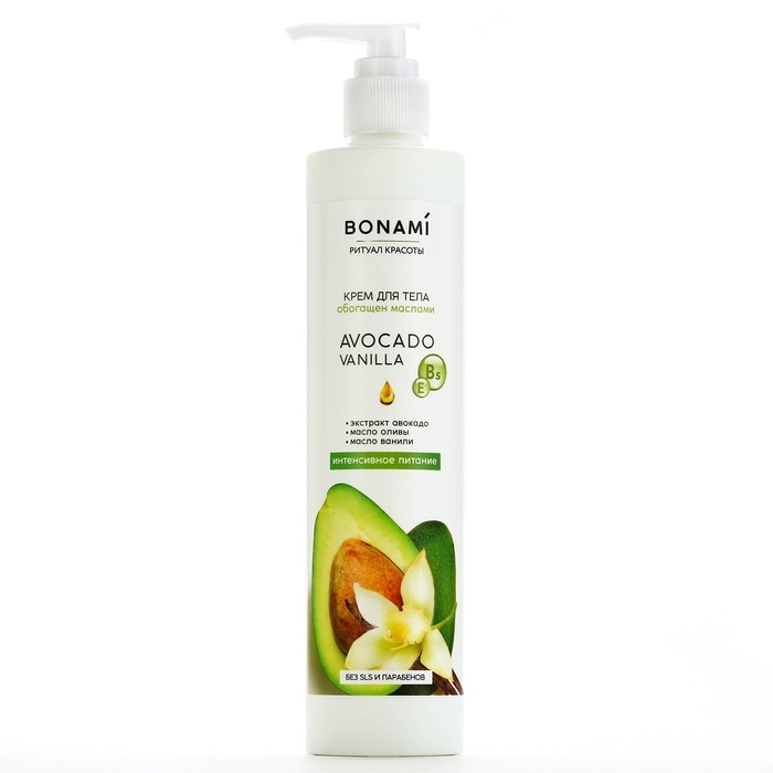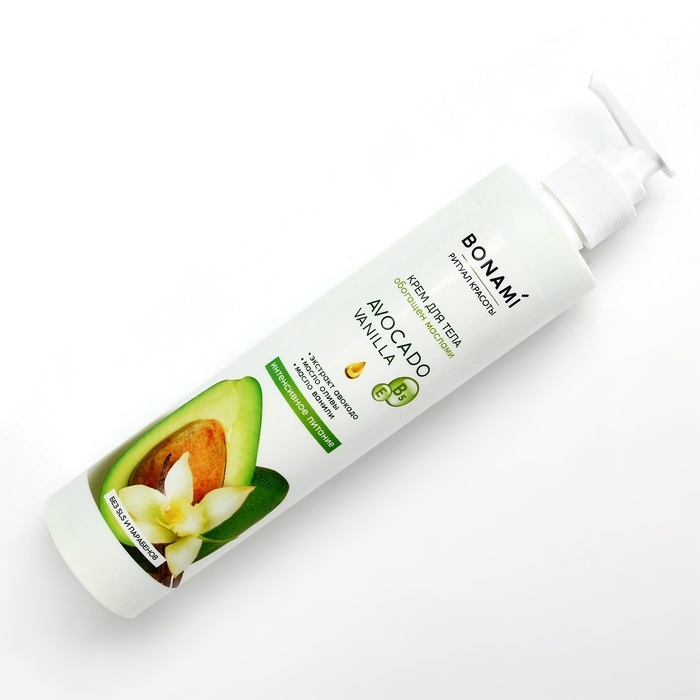 Крем для тела с экстрактом авокадо, маслом оливы и ванили, интенсивное питание, 300 мл, BONAMI