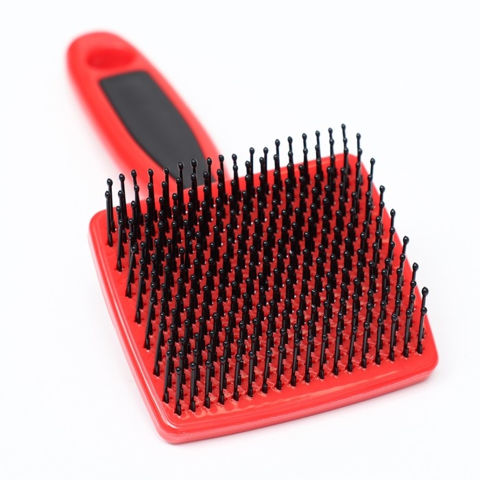 Пуходерка пластиковая мягкая с закругленными зубьями, малая, 6 х 13,5 см, чёрно-красная