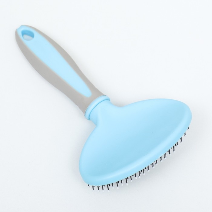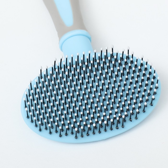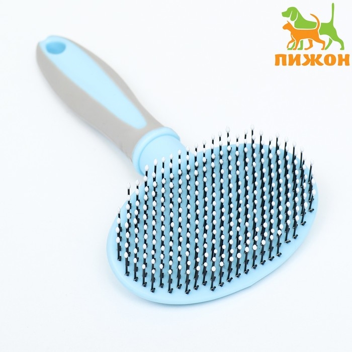 Пуходерка пластиковая мягкая с закругленными зубьями, средняя, 9,5 х 16,5 см, голубая