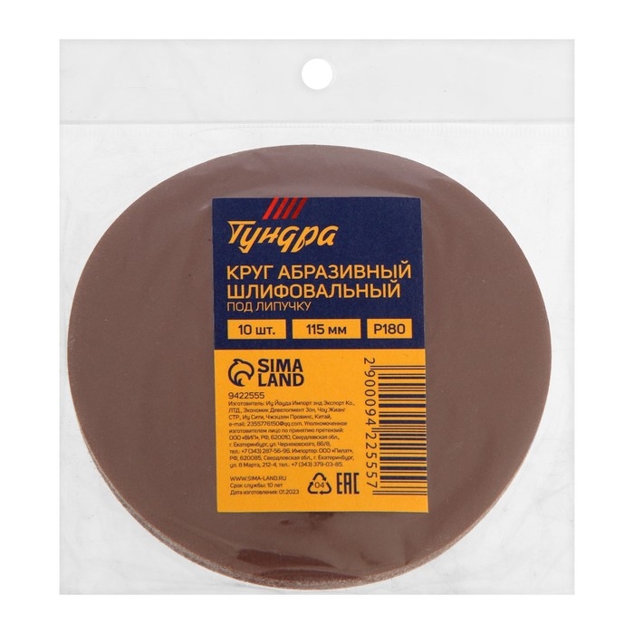 Круг абразивный шлифовальный под "липучку" ТУНДРА, 115 мм, Р180, 10 шт.