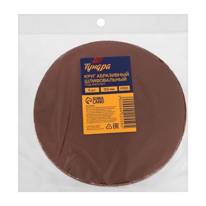 Круг абразивный шлифовальный под "липучку" ТУНДРА, 150 мм, Р100, 5 шт.