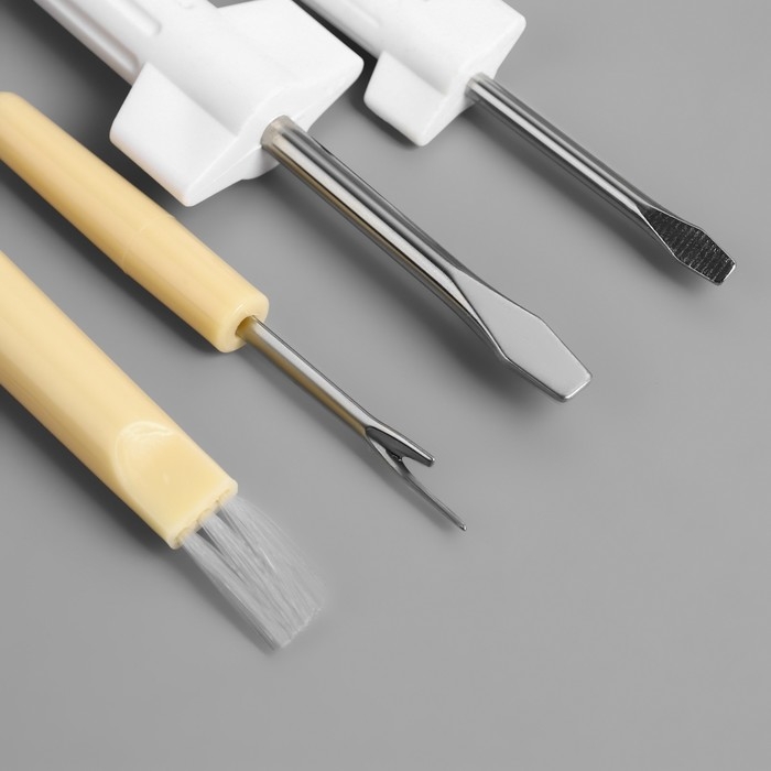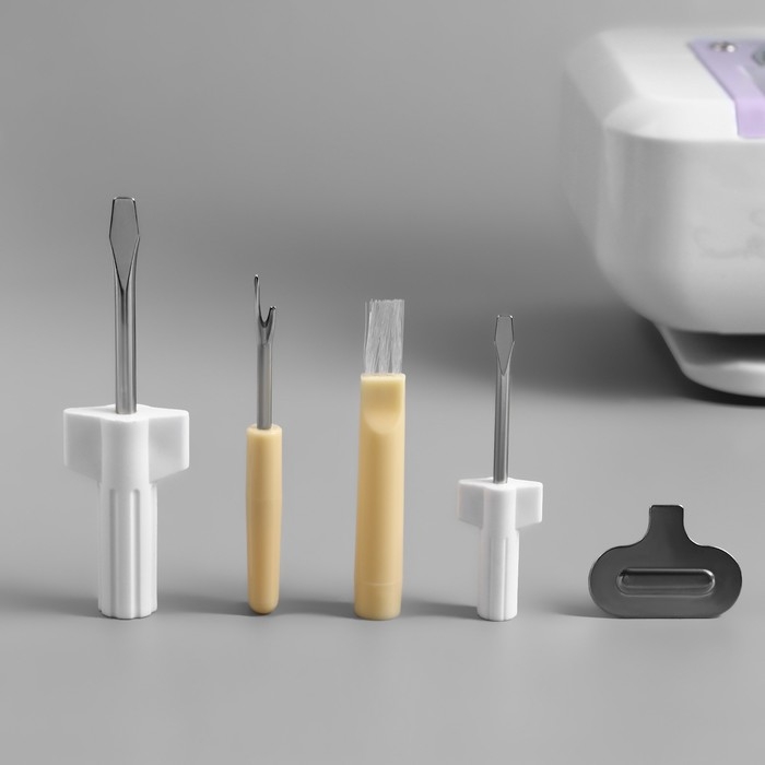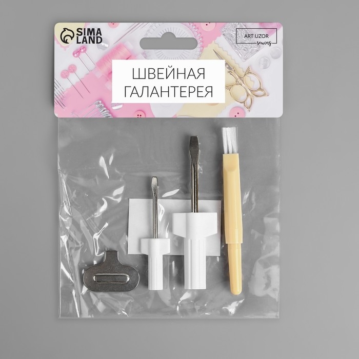 Сервисный набор для швейных машин, 4 предмета: отвёртка, 2 шт, металлический ключ, вспарыватель с щёткой