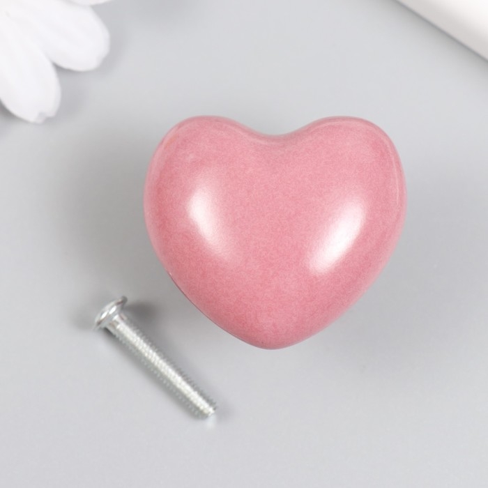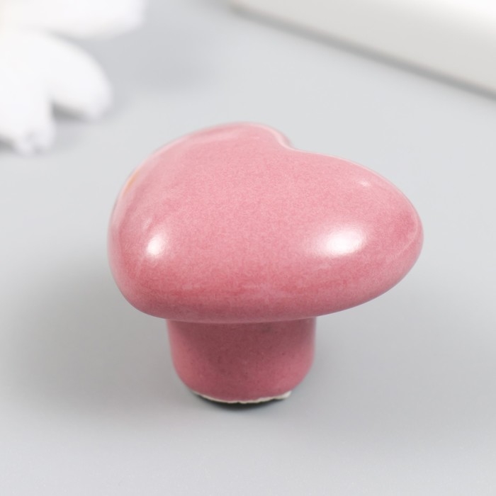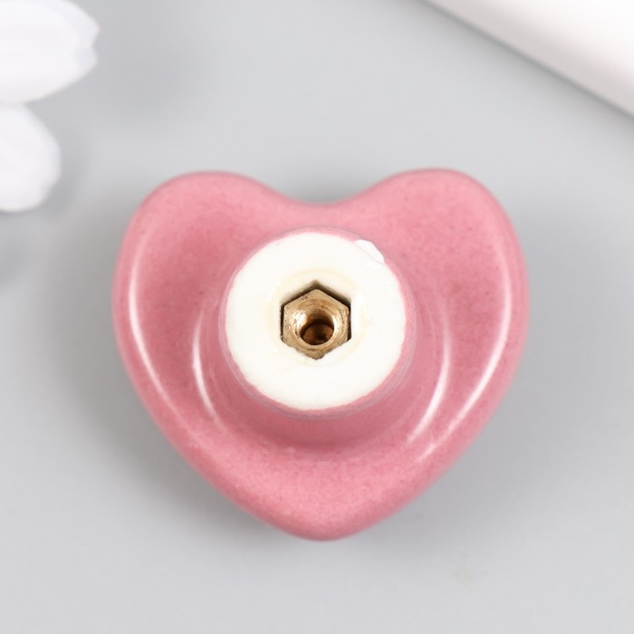 Ручка для шкатулки керамика, металл "Сердечко" розовая 3,8х3,8х3 см