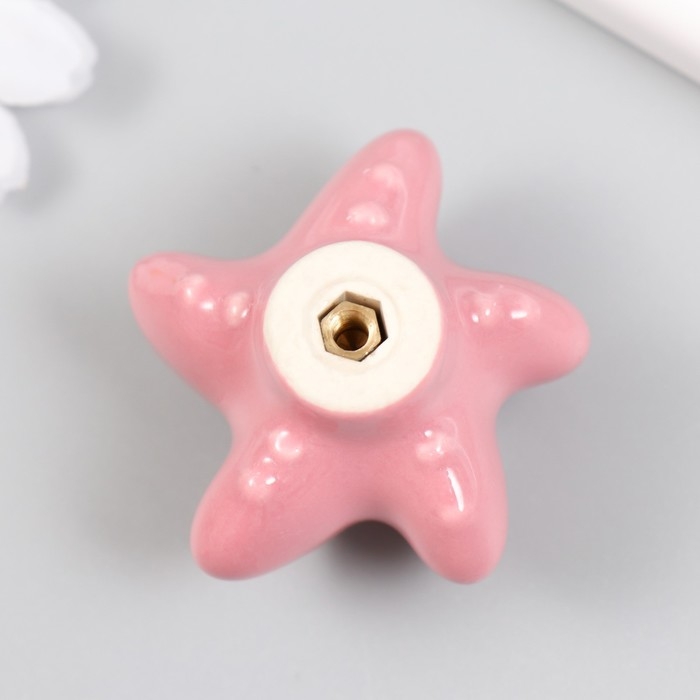 Ручка для шкатулки керамика, металл "Моская звезда" розовая 4,6х4,6х3,3 см