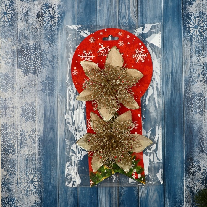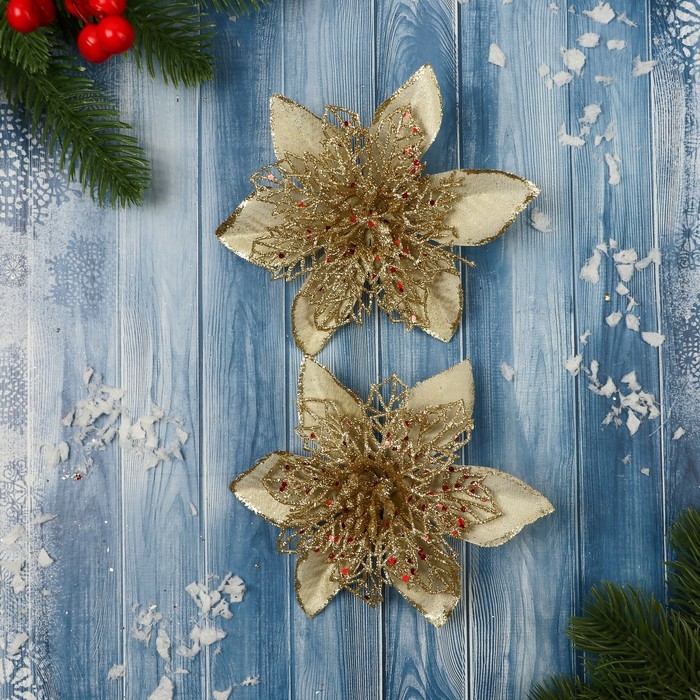 Украшение ёлочное "Драгоценный цветок" (набор 2 шт) сеточка, 12 см, золото