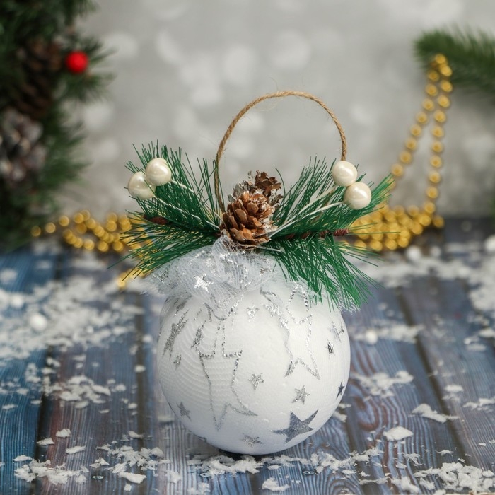 Шар пластик декор "Блеск рождества" звезды мини, 8х9,5 см, белый