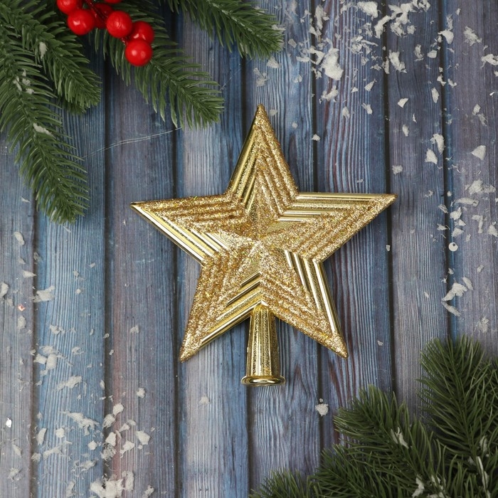 Наконечник "Звезда" классика сияние полоски, 14х14 см, золото