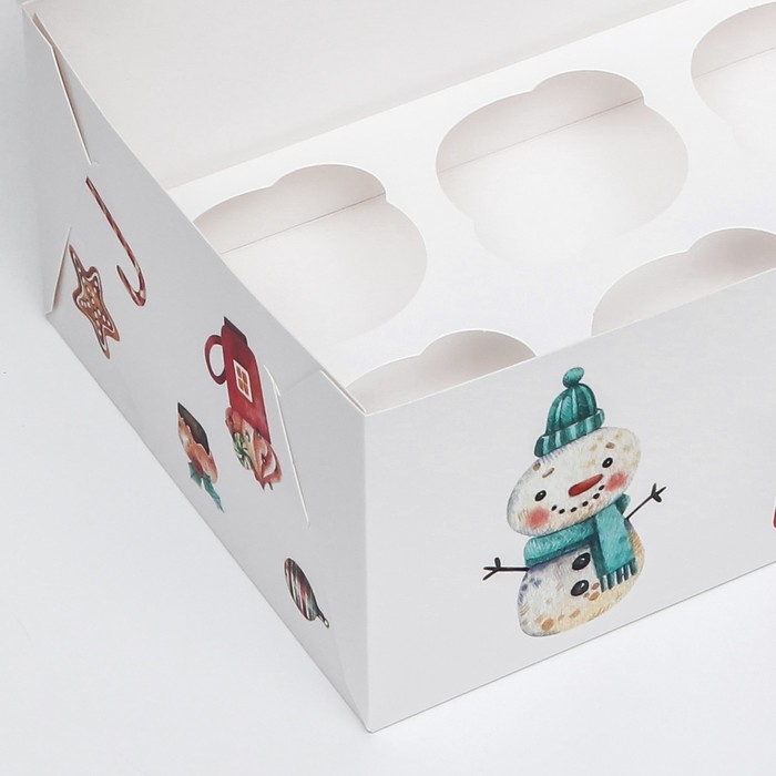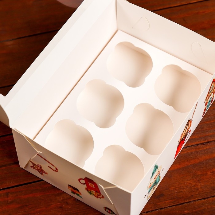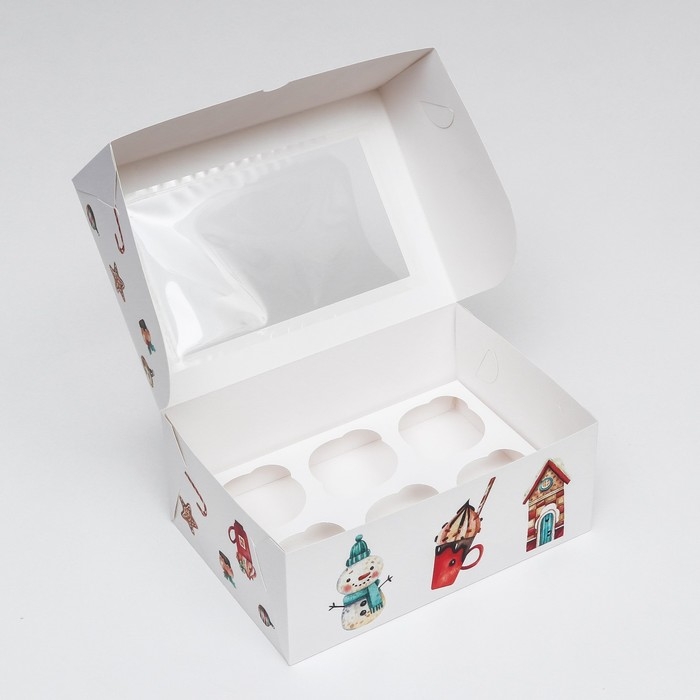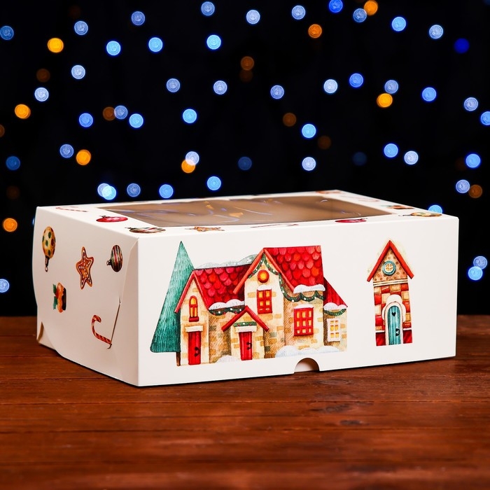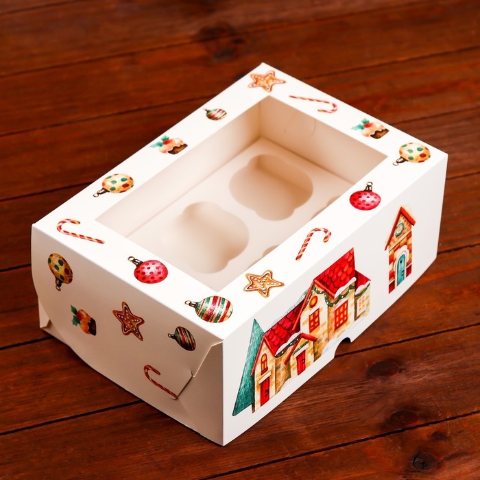 Новый год. Коробка для 6 капкейков с окном "Рождественский домик", 25 х 17 х 10 см, упаковка