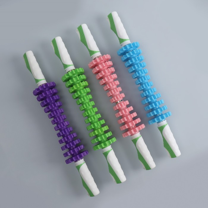 Массажёр «Скалка», универсальный, 37,5 × 4 см, 9 колёс с шипами, цвет МИКС