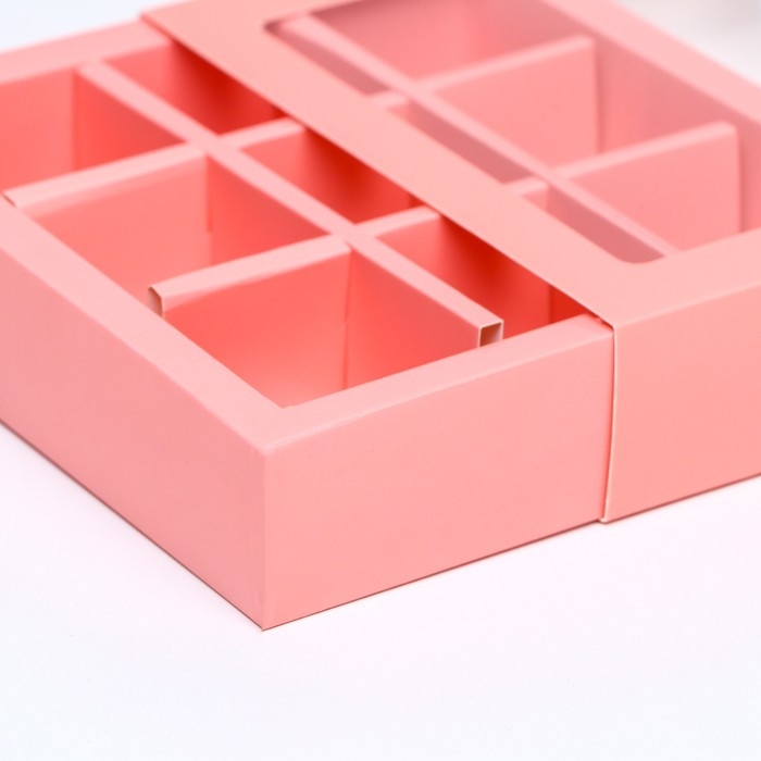 Коробка для 9 конфет, розовый, 14,5 х 14,5 х 3,5 см. Кондитерская упаковка