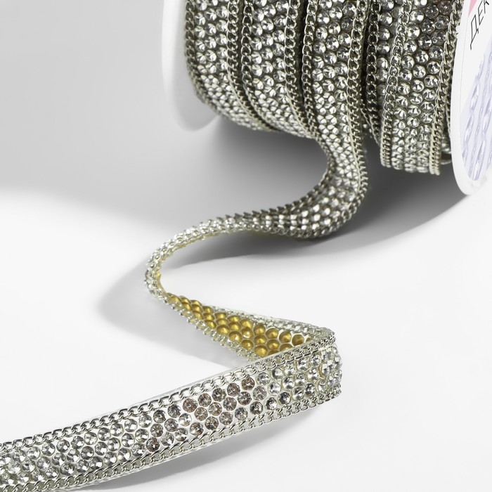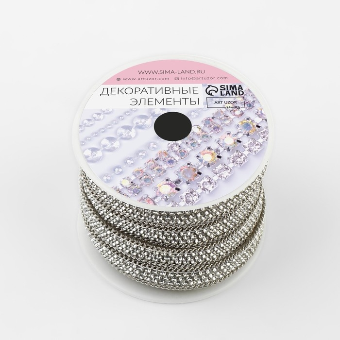 Стразы и цепочка термоклеевые, ширина - 9 мм, 4,5 ± 0,5 м, цвет серебряный