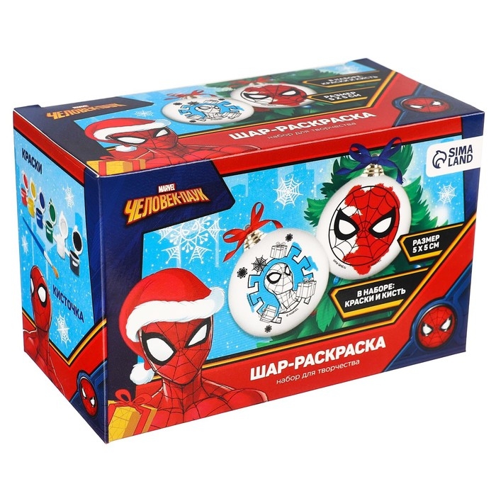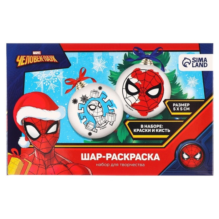 Набор для творчества на Новый год "Новогодний шар под раскраску", 2 штуки 5.5 см, Человек-паук