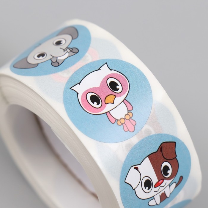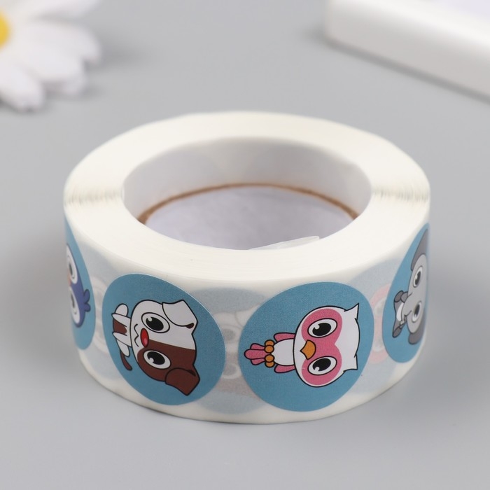 Наклейка бумага "Тропическая фауна" d=2,5 см 500 шт в рулоне 3х6,5х6,5 см