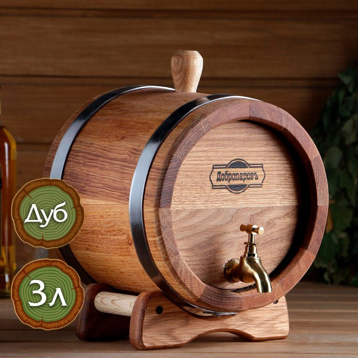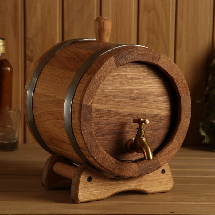 Бочка дубовая на подставке, 3л, кавказский дуб, кран из латуни, покрыта льняным маслом
