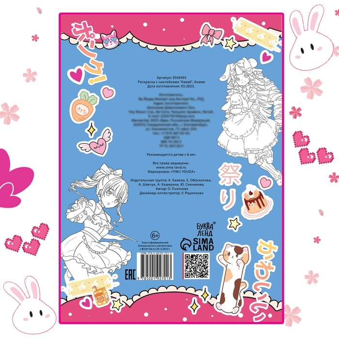 Раскраска с наклейками «Кавай», 12 стр., Аниме