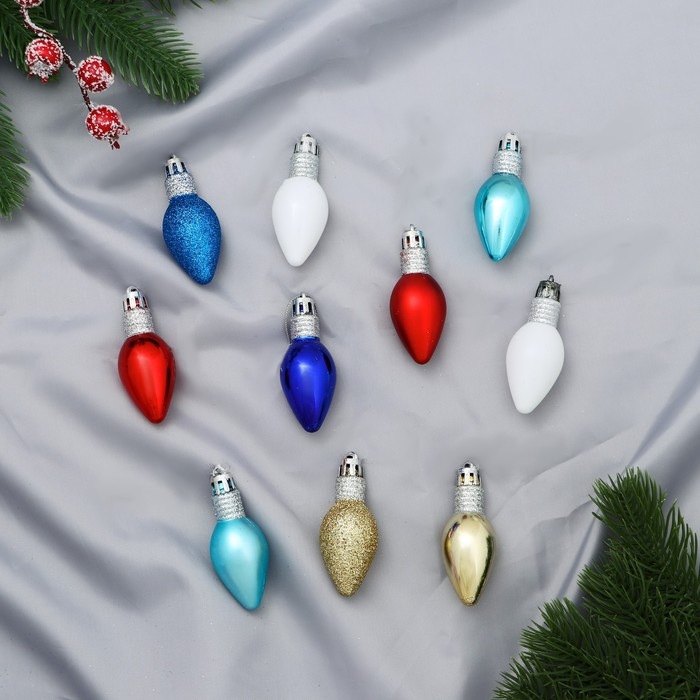 Украшение ёлочное "Лампочки диско" (набор 10 шт) 2,5х6 см, микс