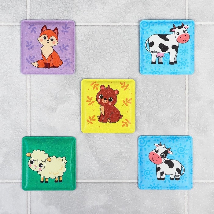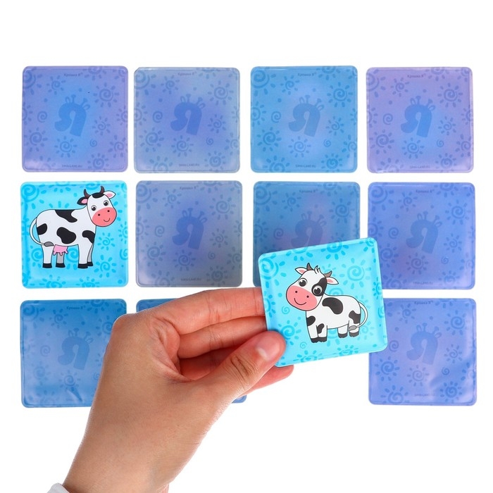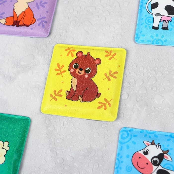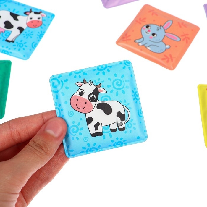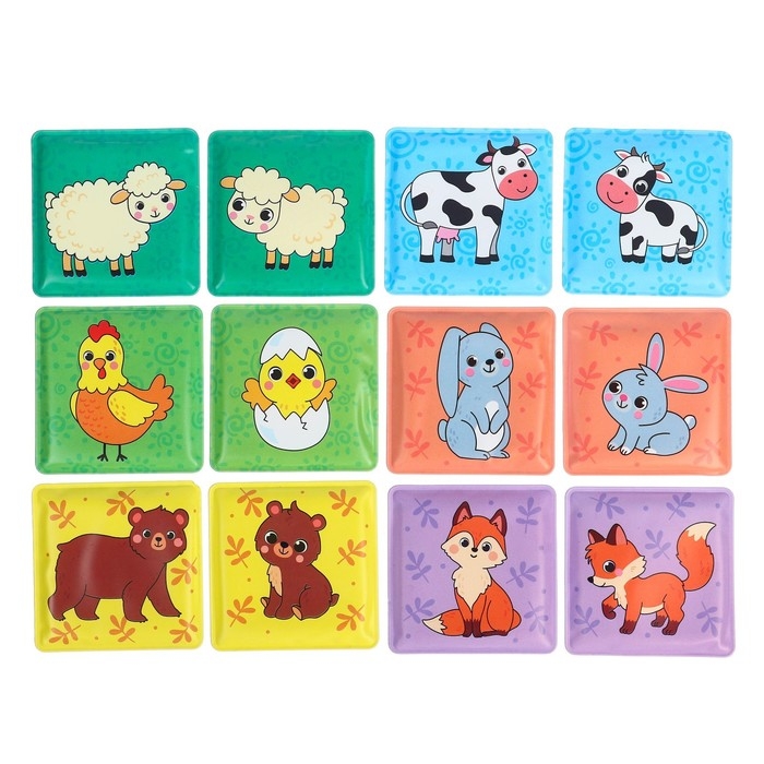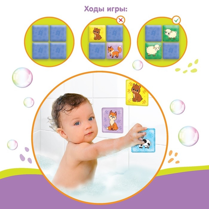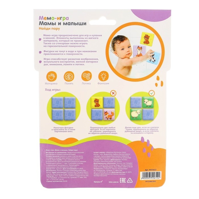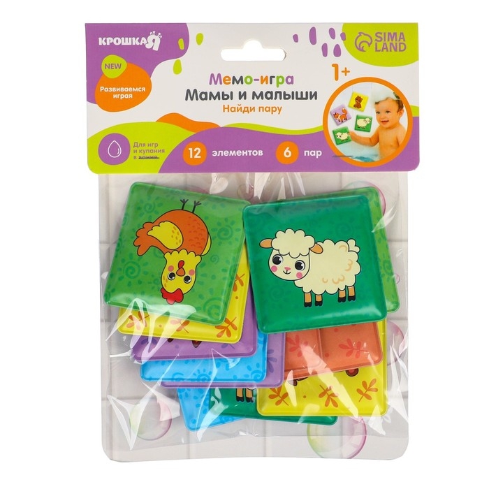 Мемо-игра: развивающие наклейки - присоски многоразовые для игры в ванной «Мамы и малыши», найди пару, 6 пар, 12 стикеров EVA, Крошка Я