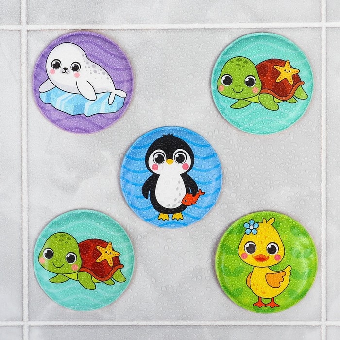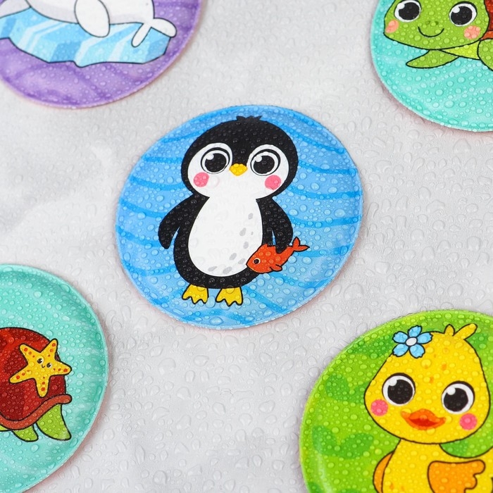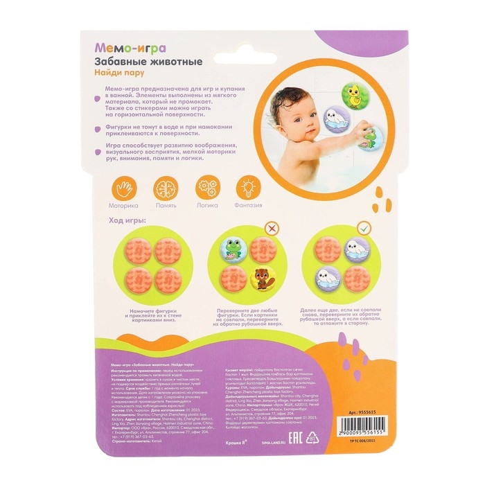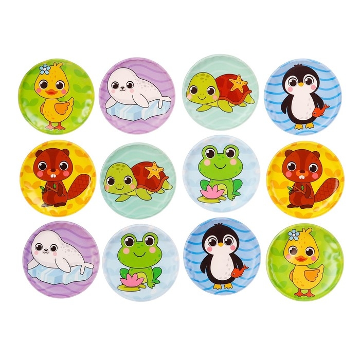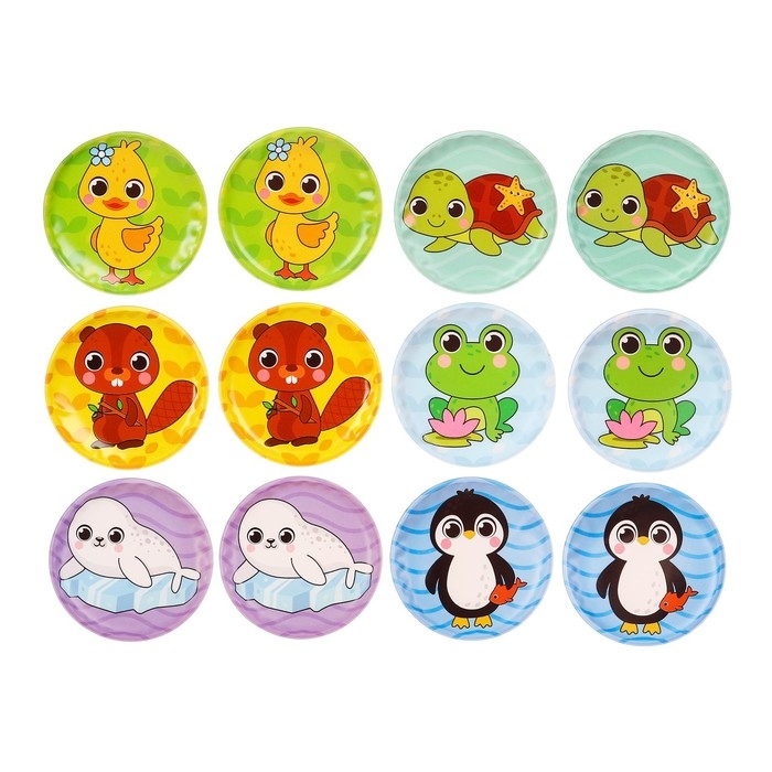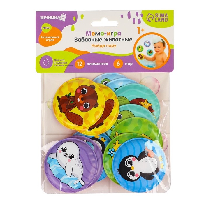 Мемо-игра: развивающие наклейки - присоски многоразовые для игры в ванной «Забавные животные», найди пару, 6 пар, 12 стикеров EVA, Крошка Я