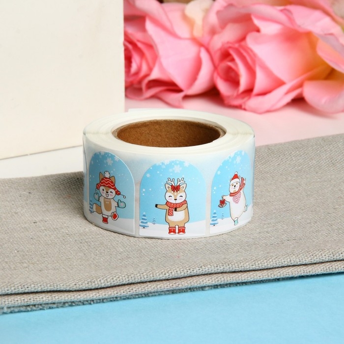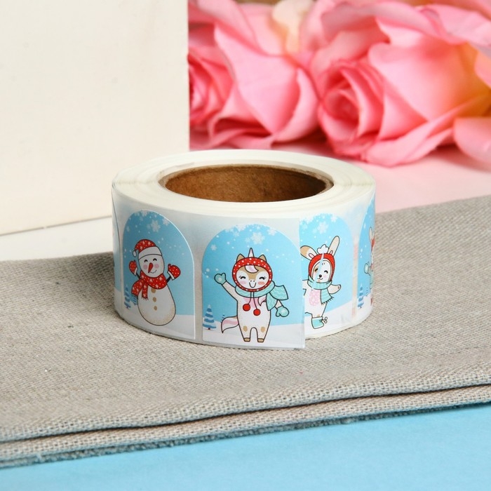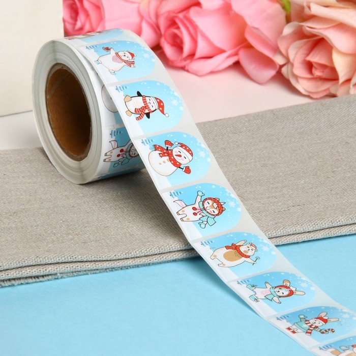 Новый год. Наклейки в рулоне "Каток", 500 шт, 3,5 х 2,5 см