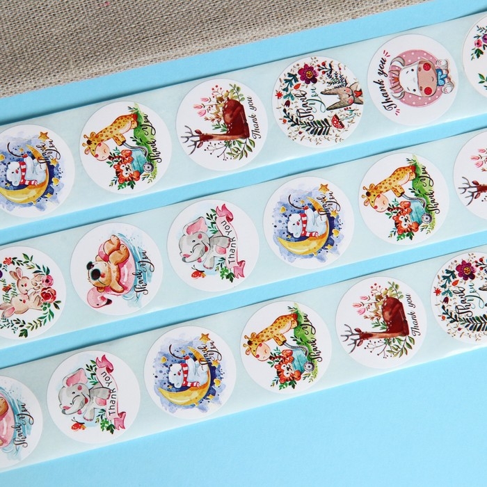 Новый год. Набор наклеек в рулоне "Животные", 500 шт, 2,5 х 2,5 см