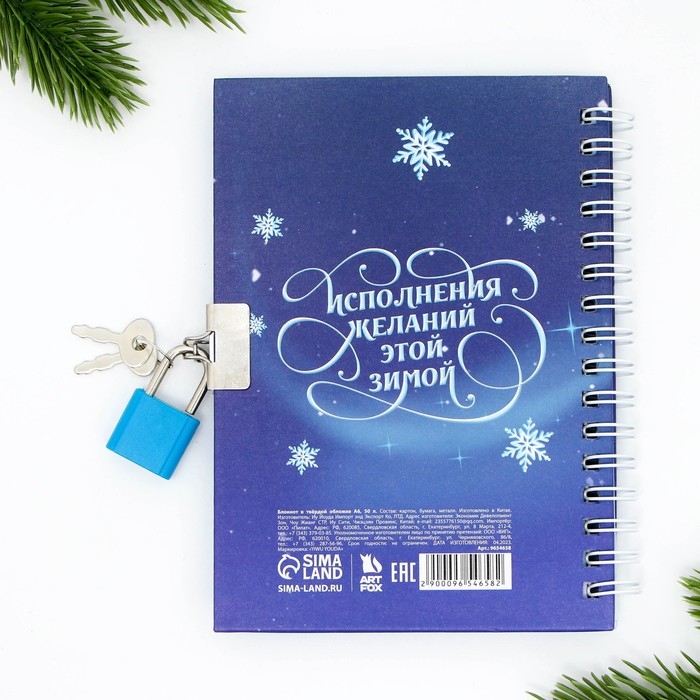 Блокнот новогодний на замочке 50 листов «Новогодний список желаний»