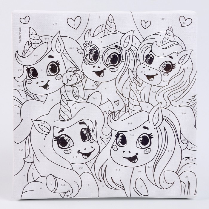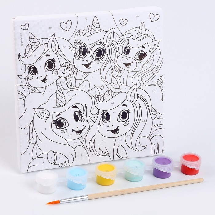 Картина по номерам для детей «Единорожки-друзья», 15 х 15 см