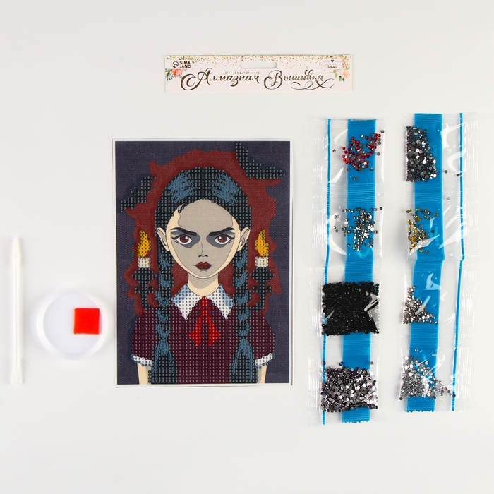 Алмазная мозаика на хеллоуин с частичным заполнением на холсте «Мрачная девочка», 15 х 21 см