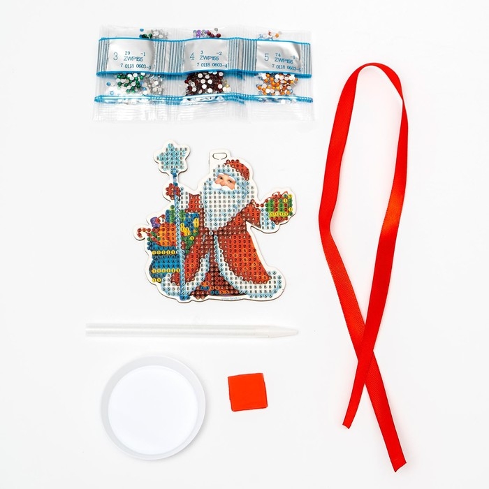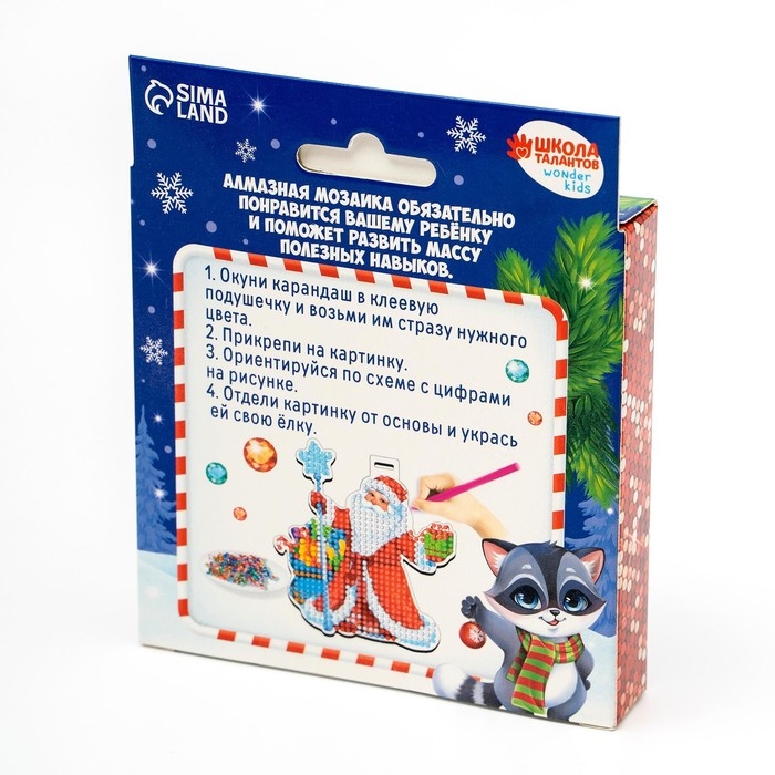 Алмазная мозаика на новый год с частичным заполнением для детей на подвеске «Дедушка Мороз», новогодний набор для творчества