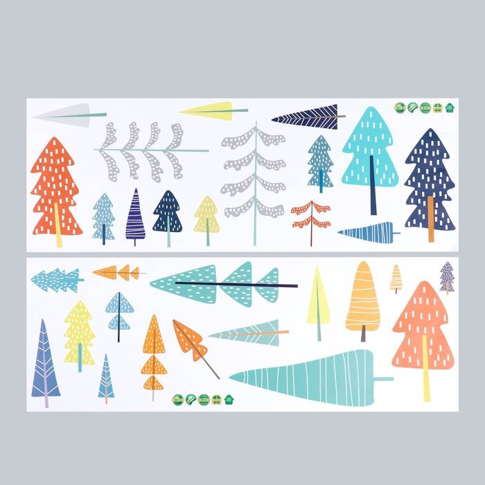 Наклейка пластик интерьерная цветная "Разноцветный лес" 25х70 см набор 2 листа