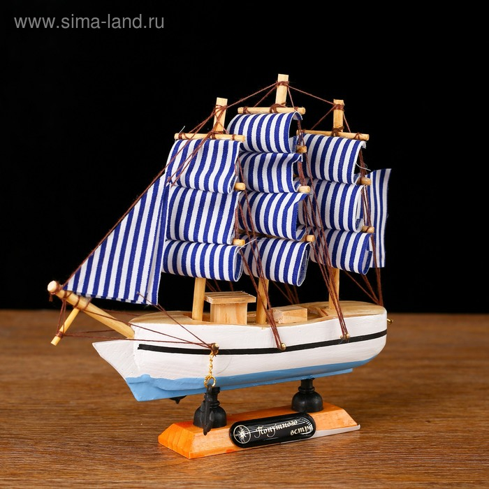 Корабль «Эмма , 16х5х16см, бело-синие паруса