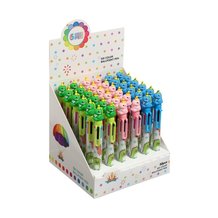 Ручка шариковая автоматическая "Дракон", 6-ти цветная, МИКС