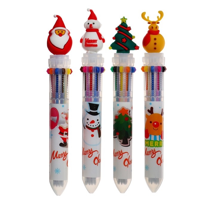 Новый год. Ручка шариковая автоматическая Calligrata, 10 цветов, МИКС