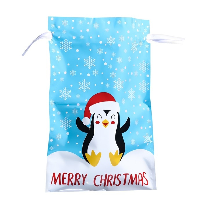 Новый год. Пакет подарочный с завязками, "Счастливый пингвин", 29х43 см.