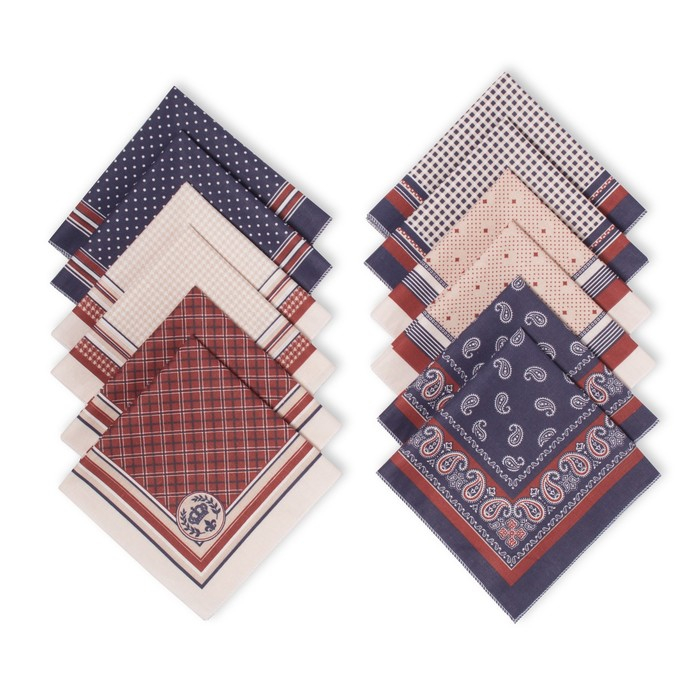 Платки носовые мужские «Этель», размер 30х30 см, (набор 12 шт,) принт МИКС, 100% хлопок
