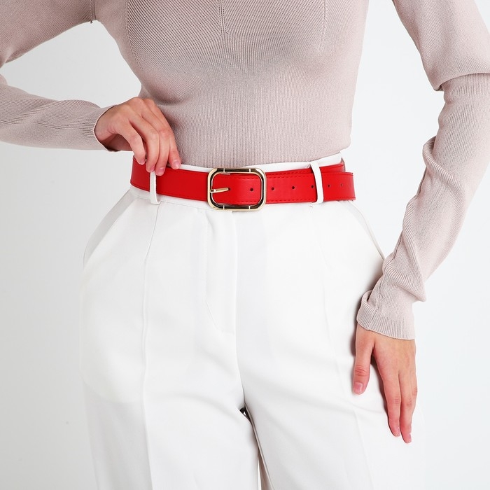 Ремень женский, ширина 3,3 см, пряжка металл, цвет красный